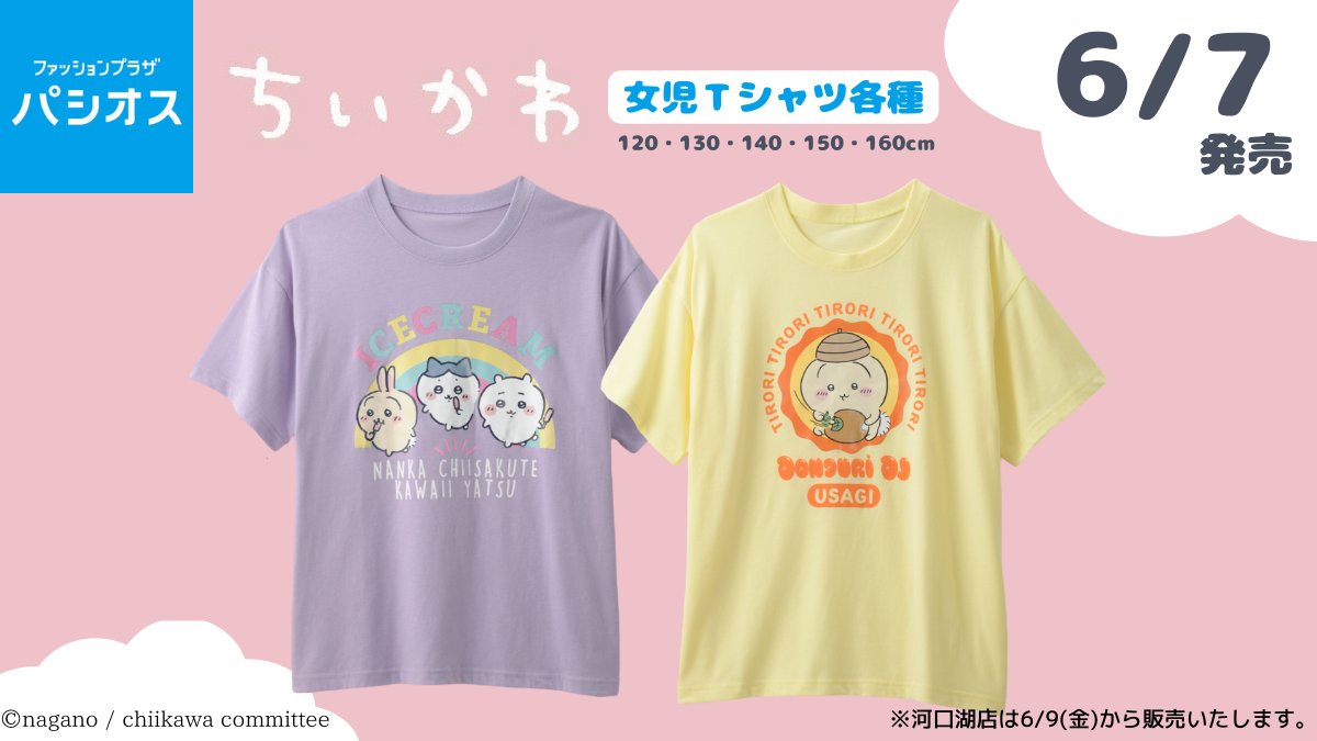 パシオスの店舗&オンラインストア【パシオスNet】にて<#ちいかわ>女児Tシャツが2型発売!