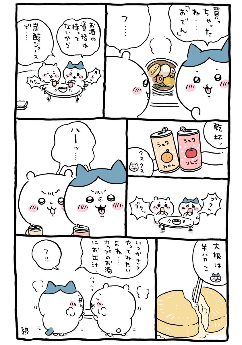 ちいかわ おでんとワンカップ大関を楽しむ話(くりまんじゅう・味しみ大根)