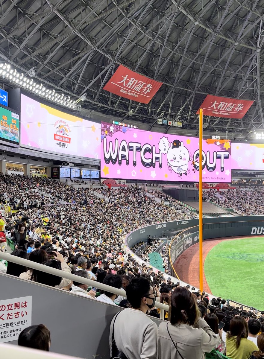 プレイボール前にはちいかわ・ハチワレ・うさぎがグラウンドに登場しました!PayPayドームのファンの皆さんにごあいさつ🫶