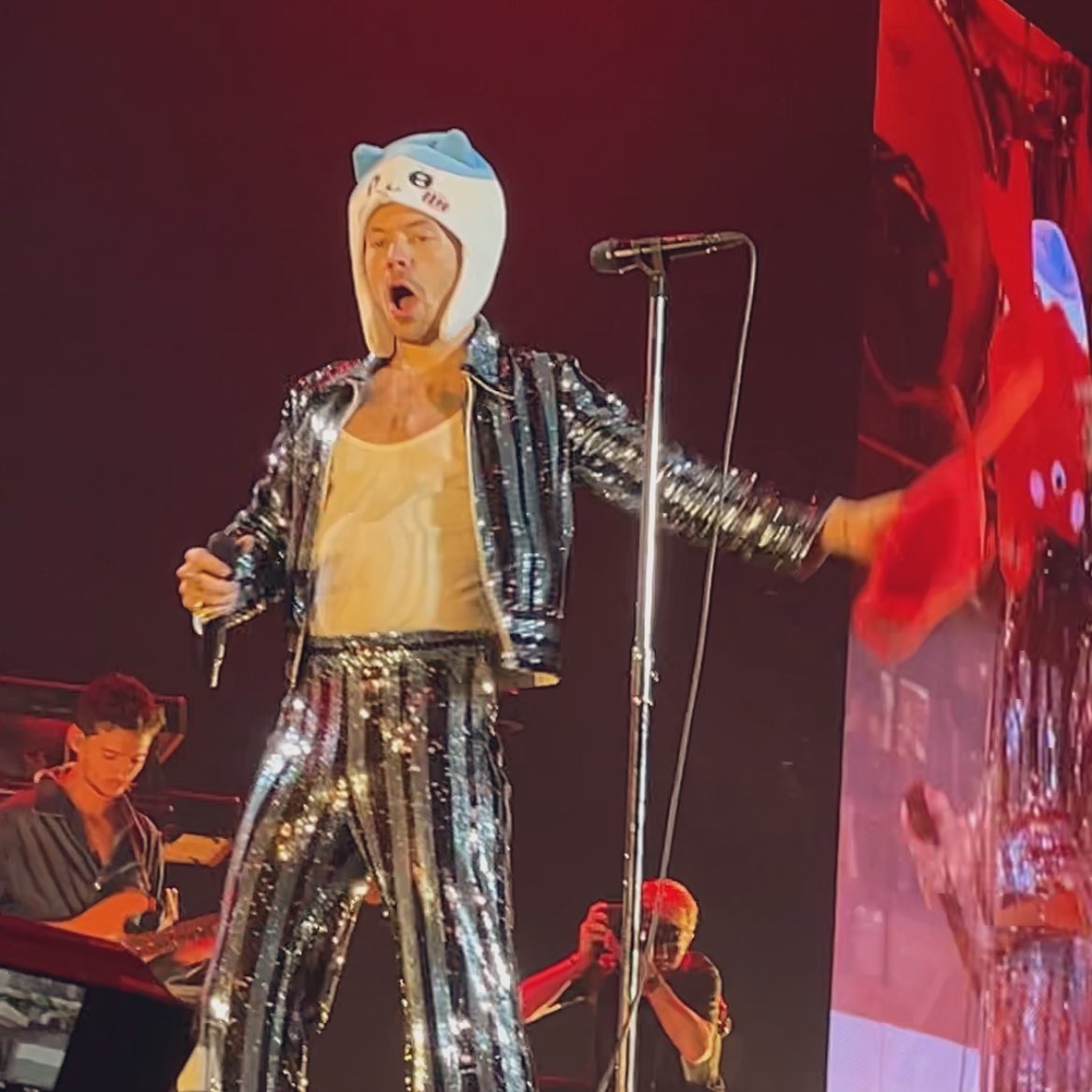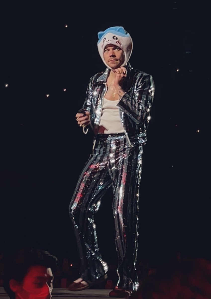 【速報】イギリスの超絶人気ボーイズグループ『ONE DIRECTION』のハリー・スタイルズさん、来日公演にて観客席から投げ込まれたハチワレの着ぐるみ帽子をかぶる