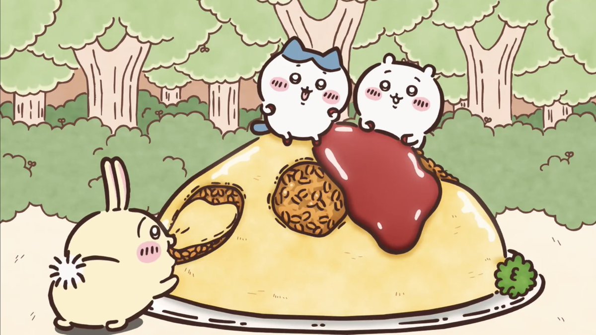 「ちいかわ」アニメ……大きなオムライス美味しそう過ぎる😋